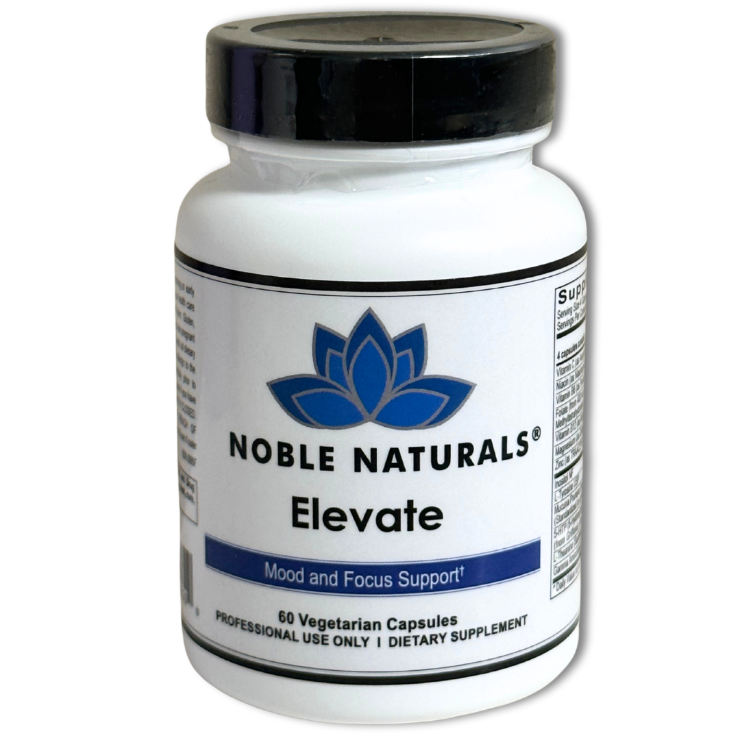Noble Elevate is formulated to support a positive mental outlook and a relaxed, focused state. It includes amino acid precursors and bioactive nutrients that support healthy levels of neurotransmitters such as gamma- aminobutyric acid (GABA), serotonin, dopamine, norepinephrine and epinephrine. Maintaining adequate neurotransmitter production is vital for regulating mood, appetite, memory, focus, energy levels and a healthy sleep cycle